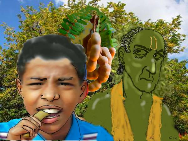 "புளிய மரமே, புளிய மரமே எனக்கு ஒரு புளியம் பழம் போடு " என்று மரத்தை அண்ணாந்து பார்த்து பாட்டாக சத்தம் போட்டு கேட்பார்கள்; என்ன ஆச்சரியம், சில புளியம் பழங்கள் விழும். அதே நேரம் ஒரு காக்காவோ, நார்த்தம்பிள்ளை குருவியோ ஒரு கிளையிலிருந்து பறந்து போகும். அல்லது வாலைத் தூக்கிக் கொண்டு ஒரு அணில் கத்தியபடியே கிளையில் ஓடும்."